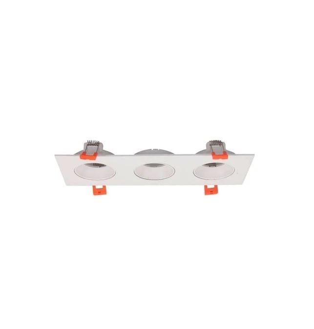 Aplique triple blanco mate basculante para empotrar en techo de último diseño fabricado en ABS plástico térmico, para utilizar con 3 bombillas de led de casquillo GU-10 ó MR-16.(Casquillos GU10 incluidos)