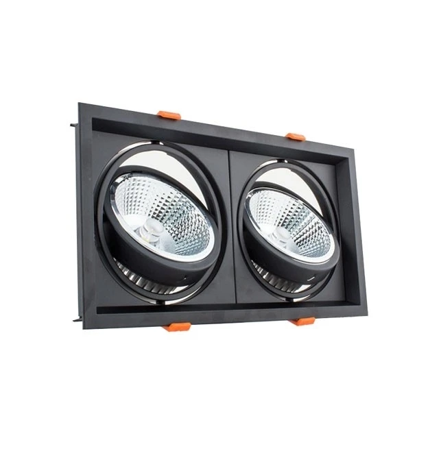 Aplique para AR111 cuadrado doble negro basculante para empotrar en techo de último diseño fabricado en ABS plástico térmico.