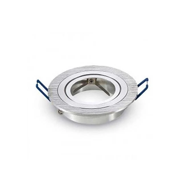 Aplique redondo basculante para empotrar en techo de último diseño fabricado en metal acabado en aluminio cepillado mate, para utilizar con bombillas de led de casquillo GU-10 ó MR-16.