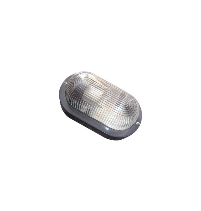 Plafón exterior ovalado para 1 bombilla E27 fabricado en plástico negro.