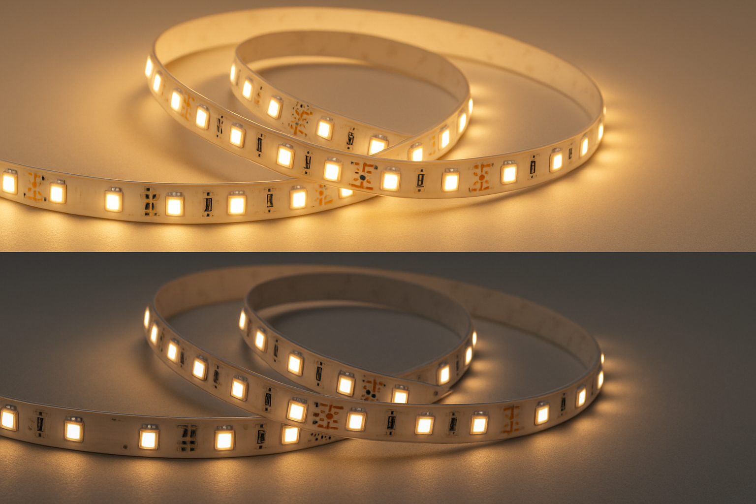 - SMD 2835/3030 alta densidad (120–280 LED/m): excelente lm/W; en 18–24 W/m alcanzan 2.000–3.500 lm/m.