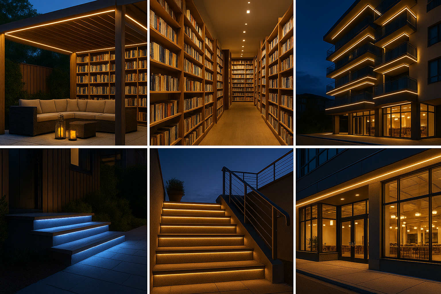 - Iluminación ambiental interior: SMD de 8–12 W/m, 300–600 lm/m, IP20 en zonas secas.