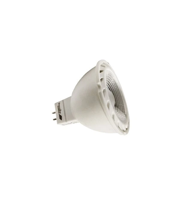 Bombilla led de casquillo MR16 de 5W de potencia, funciona a 12V de tensión continua. Tiene un cuerpo de termoplástico ignífugo además en el interior dispone de disipador de aleación de aluminio permitiendo extender el tiempo de vida útil de la bombilla hasta las 30.000horas.