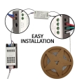 Con una potencia de salida de 6A por canal y una capacidad total de hasta 12A, este controlador es ideal para proyectos tanto residenciales como comerciales. Su instalación es simple y rápida: solo conecta la tira LED al controlador, enchufa el adaptador de corriente y asigna las zonas deseadas a través del mando remoto. Además, la reconfiguración del controlador es sencilla, permitiéndote borrar y modificar la asignación de zonas en cuestión de segundos.