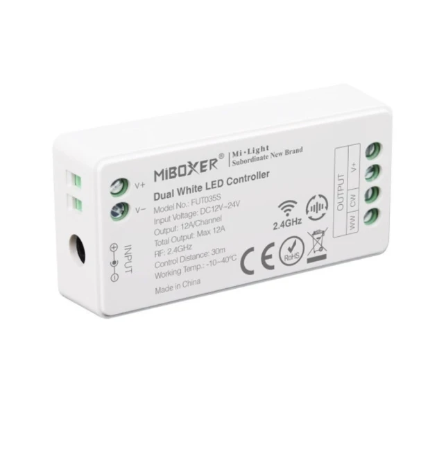 Optimiza y personaliza tu sistema de iluminación LED con este controlador especialmente diseñado para tiras LED monocolor y CCT (blanco dual). Gracias a su tecnología RF 2.4GHz, disfrutarás de un control remoto inalámbrico fiable, sin interferencias y con un alcance de hasta 30 metros, perfecto para gestionar la intensidad de la luz y crear efectos dinámicos que transformarán tu espacio.