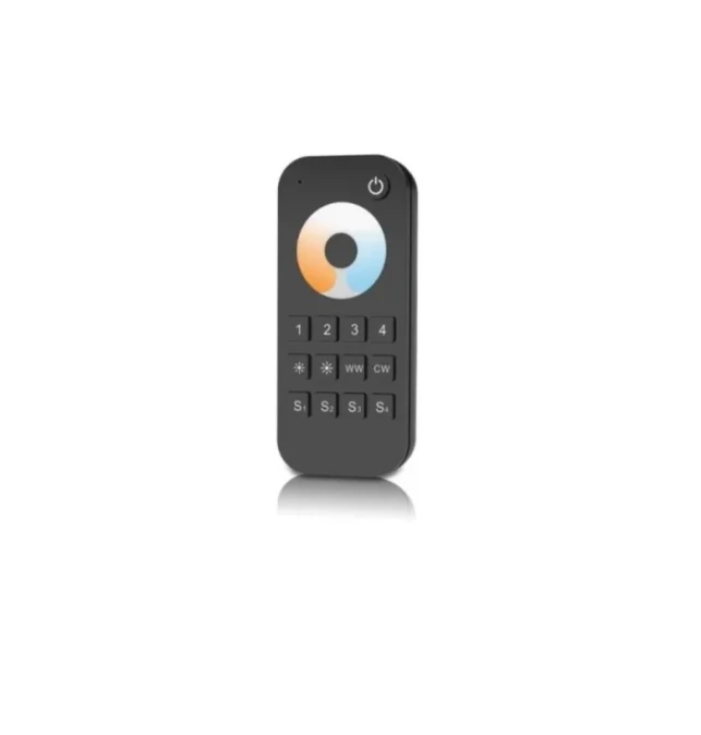 Este mando está diseñado para gestionar fácilmente la temperatura de luz de hasta 4 zonas distintas de iluminación LED en tiras de led a 220-230V CCT. Con este mando puedes cambiar el tono de luz entre luz cálida, neutra o fría en cada zona de forma rápida y sin complicaciones.