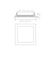 Su tamaño es: 120x120x17mm y su tamaño de corte: 105x105mm