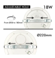 Características del Downlight + Plafón LED redondo ajustable 18W CCT blanco