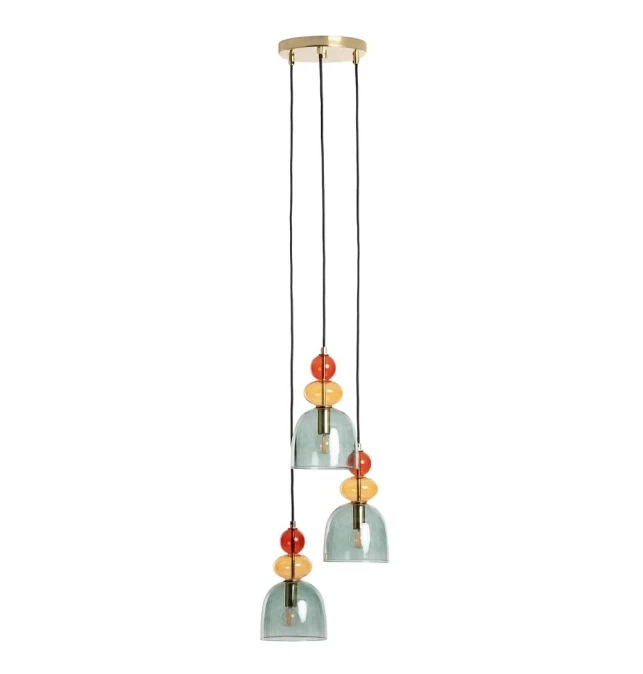 • Lámpara de techo colgante con 3 tulipas de cristal oro y verde