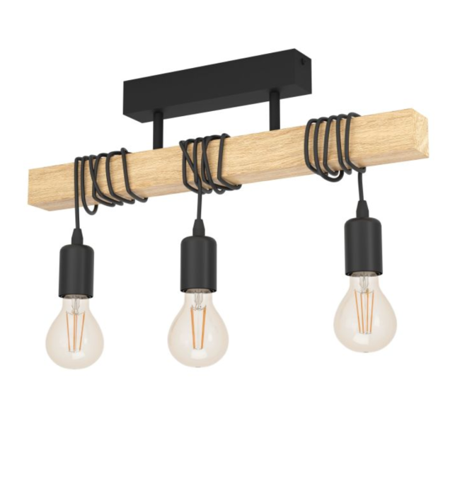 Lámpara colgante de techo Eglo Townshend negra y madera