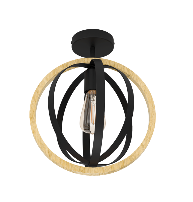 Lámpara de techo decorativa Eglo Basildon negra y madera