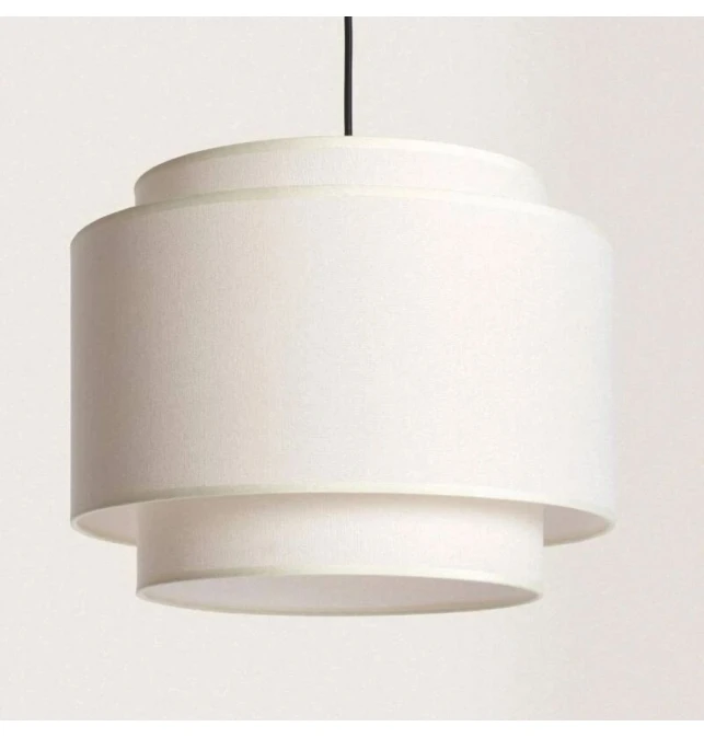Tigris es una lámpara colgante de techo que combina la suavidad de la tela reforzada con la estructura metálica, formando una silueta moderna y atemporal. Su pantalla se compone de cilindros concéntricos, creando un efecto visual volumétrico y sofisticado. Funciona con bombilla de casquillo E27 (no incluida), lo que te da libertad para elegir la iluminación que mejor se adapte a tu estilo: luz cálida, neutra, fría, LED o regulable.