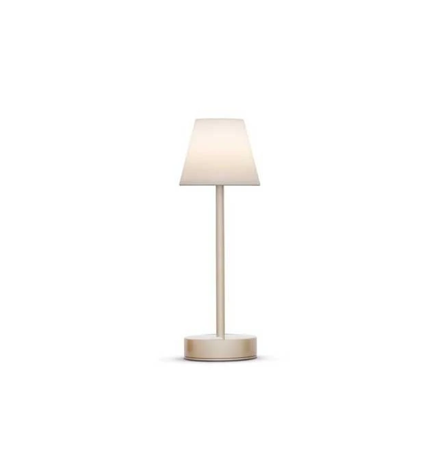 Olvídate de los cables por el suelo, esta lámpara la podrás usar tanto en interior como en exterior gracias a su grado de protección IP44, llévatela contigo según tus momentos y/o necesidades. La lámpara de mesa Lola Slim 30, se ideal para cualquier rincón de tu hogar, zonas infantiles o habitaciones. Debido a su pequeño tamaño es perfecta para decorar e iluminar mesas de restaurantes, bares, terrazas, hoteles o negocios. Su color es dorado.