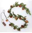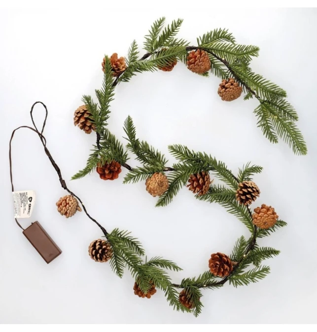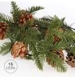 Guirnalda de luces con ramas de pino y piñas 1,4m cálida