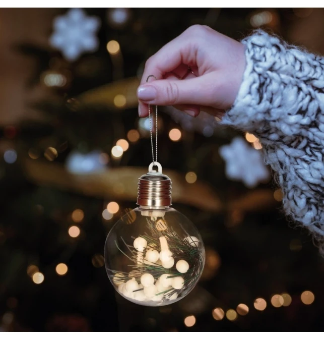 <p data-start="709" data-end="962">Esta elegante bola decorativa con luz LED combina diseño y calidez a la perfección. En su interior encontrarás mini bolas de algodón y hojas de pino, que aportan un estilo natural y sofisticado, evocando la esencia de la Navidad más auténtica.</p>