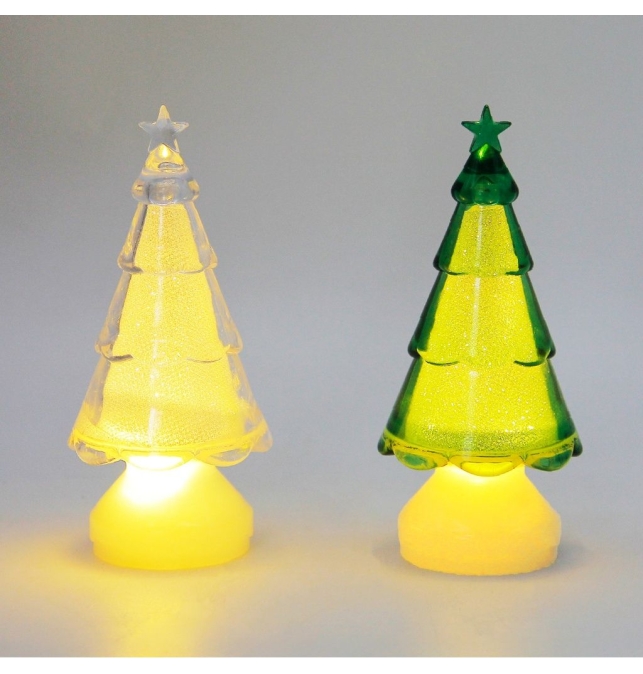 Cada árbol mide 5 cm de ancho y 11,5 cm de alto, el tamaño ideal para colocar sobre una mesa, estantería, repisa o incluso como centro de mesa navideño. Su diseño moderno, con acabado translúcido y un suave brillo interior, combina a la perfección con cualquier estilo de decoración.