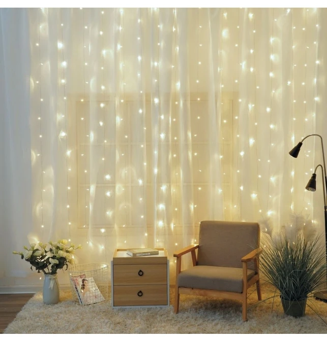 • Cortina de luces de guirnaldas led 2x2 luz blanca fría