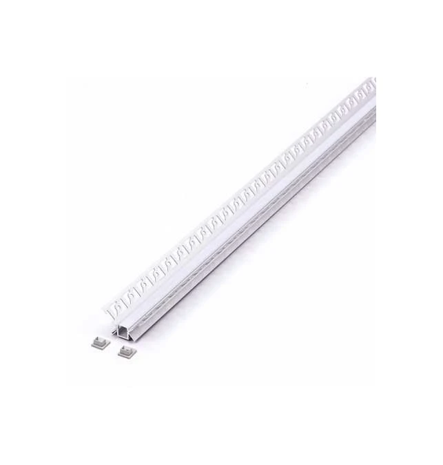 Este perfil empotrado de aluminio está diseñado para la instalación de tiras LED en superficies como pladur, yeso, azulejos y otros materiales de construcción. Sus aletas perforadas permiten una fijación firme y sencilla, logrando que el perfil quede completamente integrado en la estructura, sin sobresalir, y creando una solución de iluminación discreta y funcional.