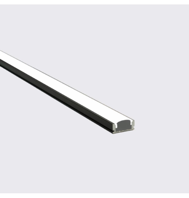 ¿Qué destaca de este perfil superficie de aluminio en color negro con difusor blanco?