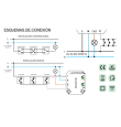 Este regulador con Wifi está especialmente diseñado para lámparas LED regulables en principio de faseo final de base. Con su tamaño compacto y delgado, puede instalarse fácilmente detrás de los pulsadores en cajas de mecanismos o en las cajas de registro.