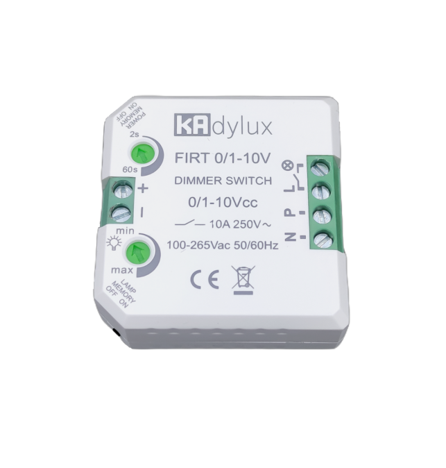 Características del regulador led y fluorescencia universal 0-10v con memoria de red e intensidad Kadylux Firt01-10V
