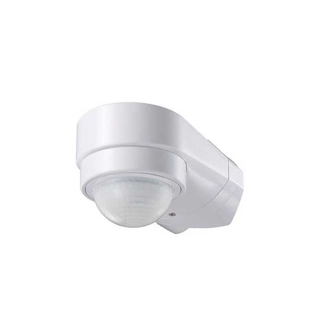 Detector de movimiento por infrarrojos acabado en blanco y grado de protección IP65 , para instalar en superficie y gracias a su forma especial, ideal para esquinas. Permite el encendido y apagado automático de iluminación incandescente, halógena de bajo consumo y led.