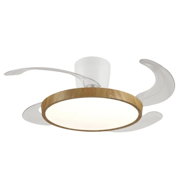 El Melody incorpora 4 aspas retráctiles transparentes, que se despliegan cuando necesitas ventilación y se ocultan cuando solo quieres iluminación, funcionando como un sofisticado plafón LED moderno. Es una solución 2 en 1 que combina ventilador y lámpara de techo en un solo producto.