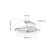 Su tamaño cerrado es Ø48,5cm y abierto Ø106cm.