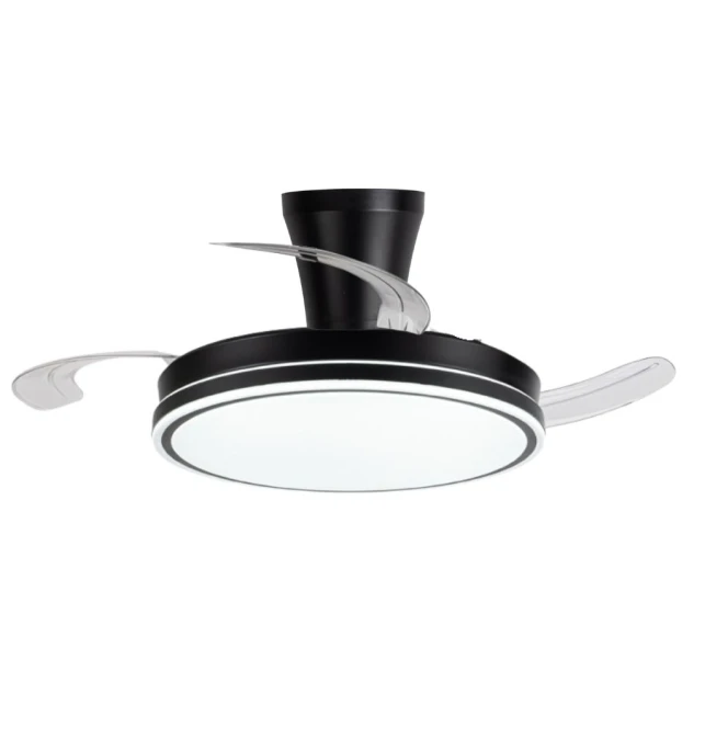 Este ventilador de techo destaca por su diseño elegante con aspas retráctiles que se esconden cuando no se usan, lo que lo convierte en una opción perfecta para cualquier habitación que busque un aire moderno y sofisticado. Su diseño minimalista se adapta a la perfección a cualquier estilo de decoración, ideal para dormitorios, salones o cualquier espacio interior que necesite un toque de distinción.