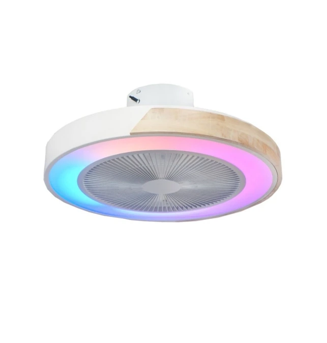 Cacterísticas del ventilador de techo led con aspas ocultas Arcoiris 35W RGB blanco y madera Wifi