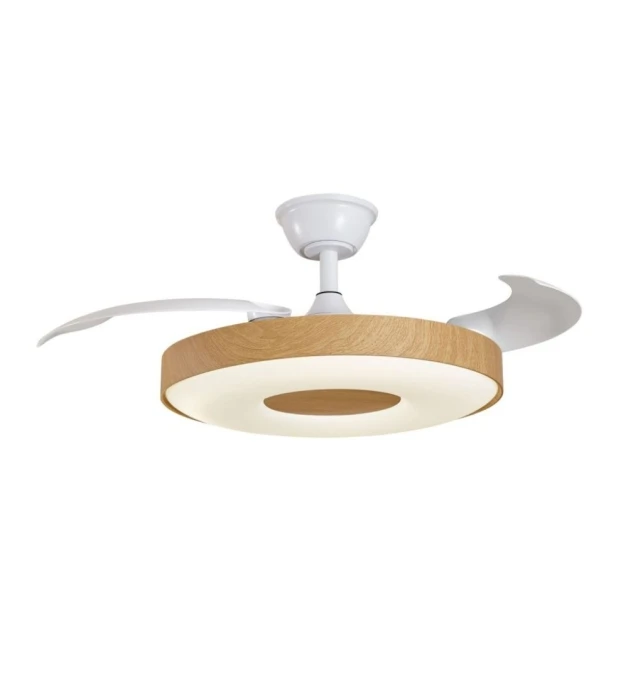 Características del ventilador de techo led con aspas retráctiles Jueric Paris 50W blanco y haya